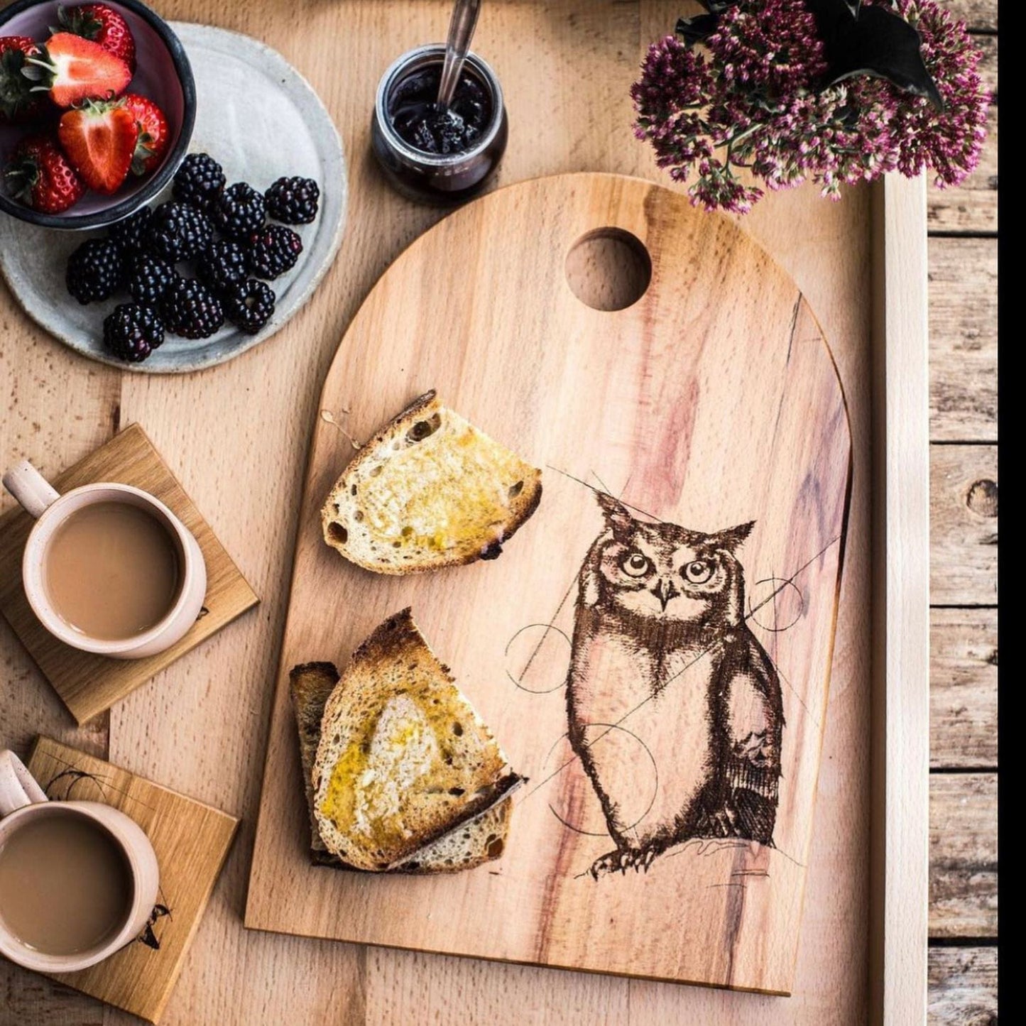 Caulfield Country Boards is a unique family business with the Caulfield family combining their skills of joinery, philosophy, science and art to create their hand crafted wooden boards and homewares that celebrate Ireland’s folklore and wildlife. Their contemporary tableware and kitchen accessories are practical, charming and innovatively designed. All of their creations are designed and made in Carnaross, Co. Meath, Ireland from beautiful, sustainably sourced hardwoods.