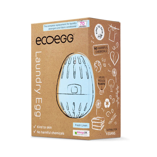 Looking for a greener way to wash your clothes? The Ecoegg is a refillable egg-shaped capsule which washes with non-biological natural mineral pellets.