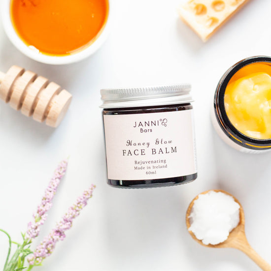 Make your skin glow with this highly moisturizing and soothing face balm, made with Irish Heather Honey, rosehip oil and lavender essential oil.
