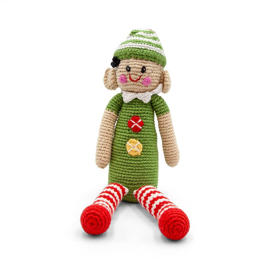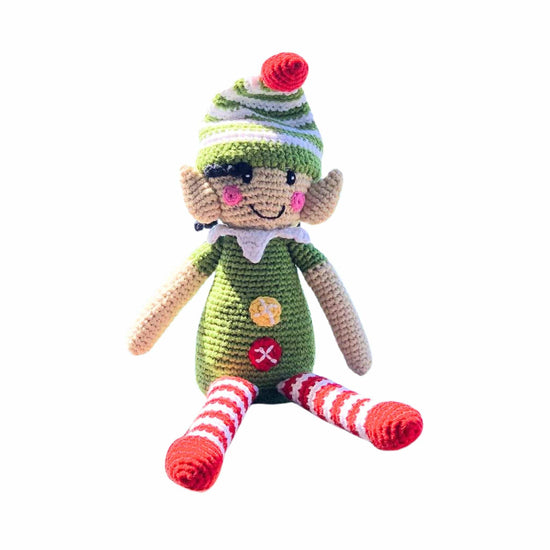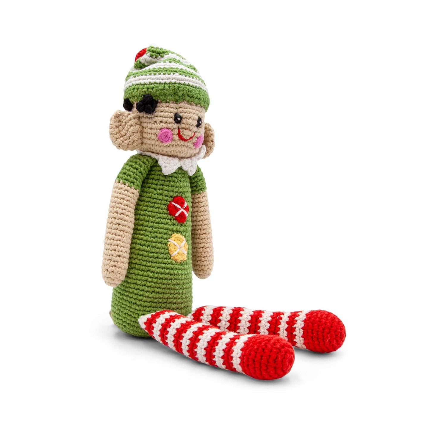 Materials: 100% organic cotton with 100% polyester fill. This toy has a rattle.