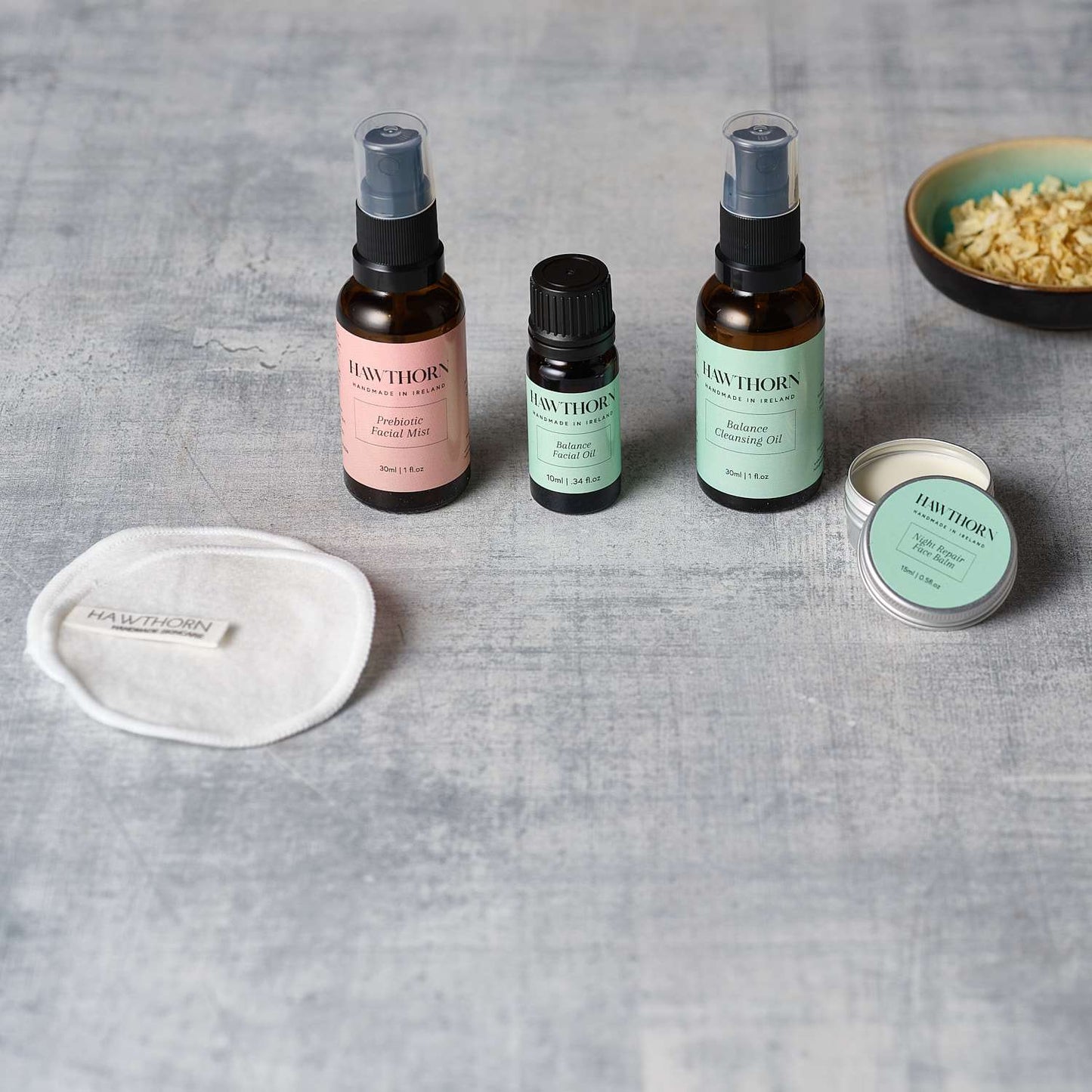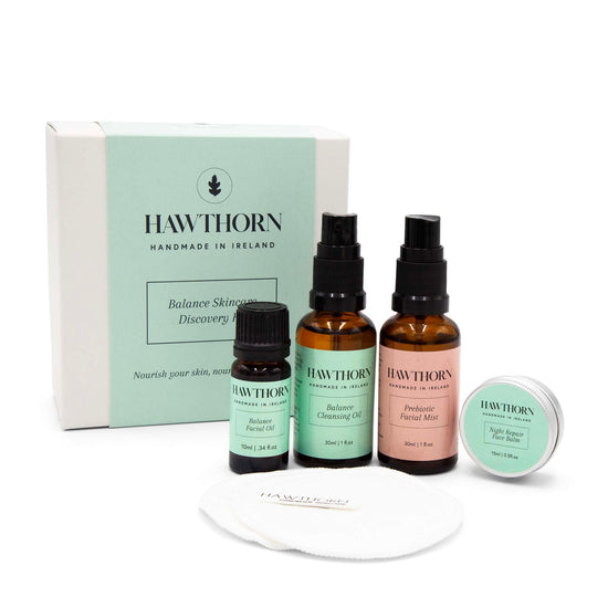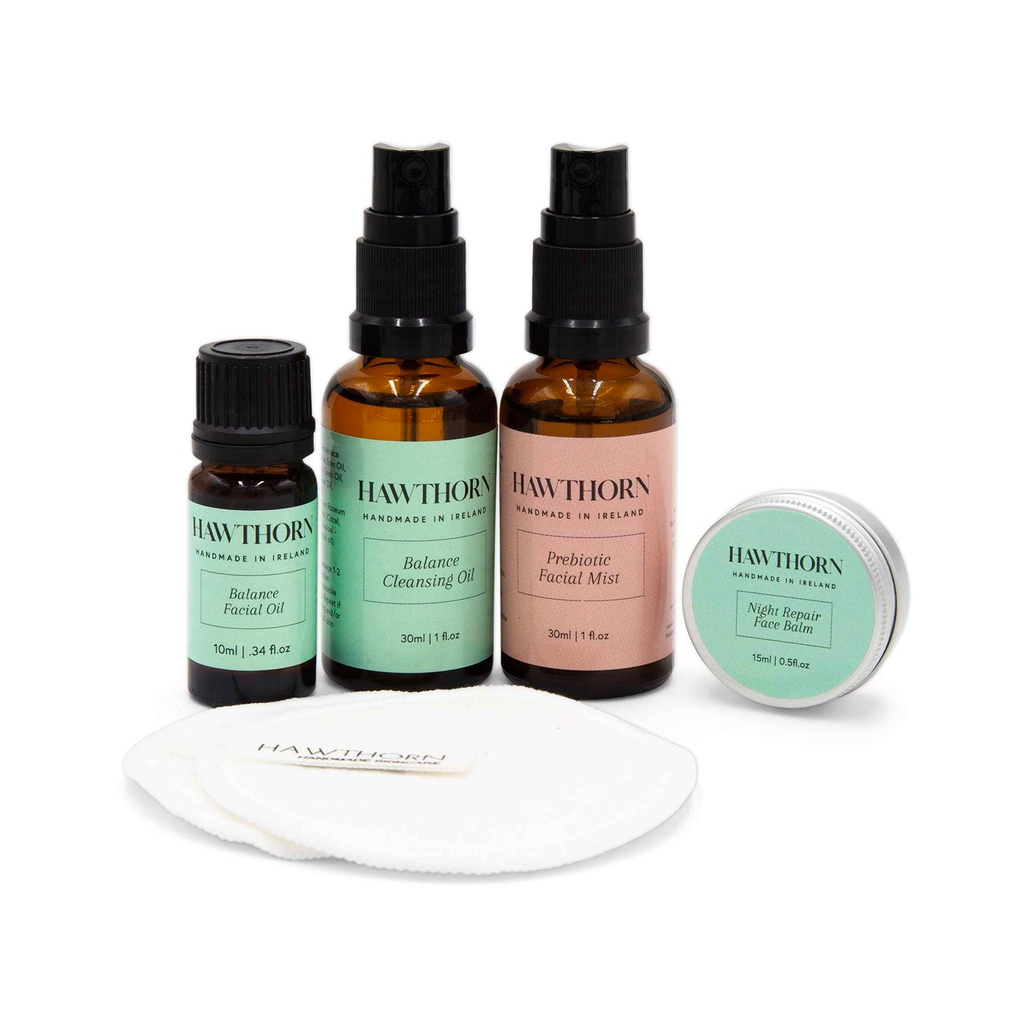 Seeking a natural approach to skincare? Discover Hawthorn Handmade Skincare with this selection of skincare essentials. Contains travel size versions of our Balance skincare range with handy reusable bamboo cotton cleansing pads. Especially beneficial for oily and combination skin types. Perfect for traveling or trying out the products.