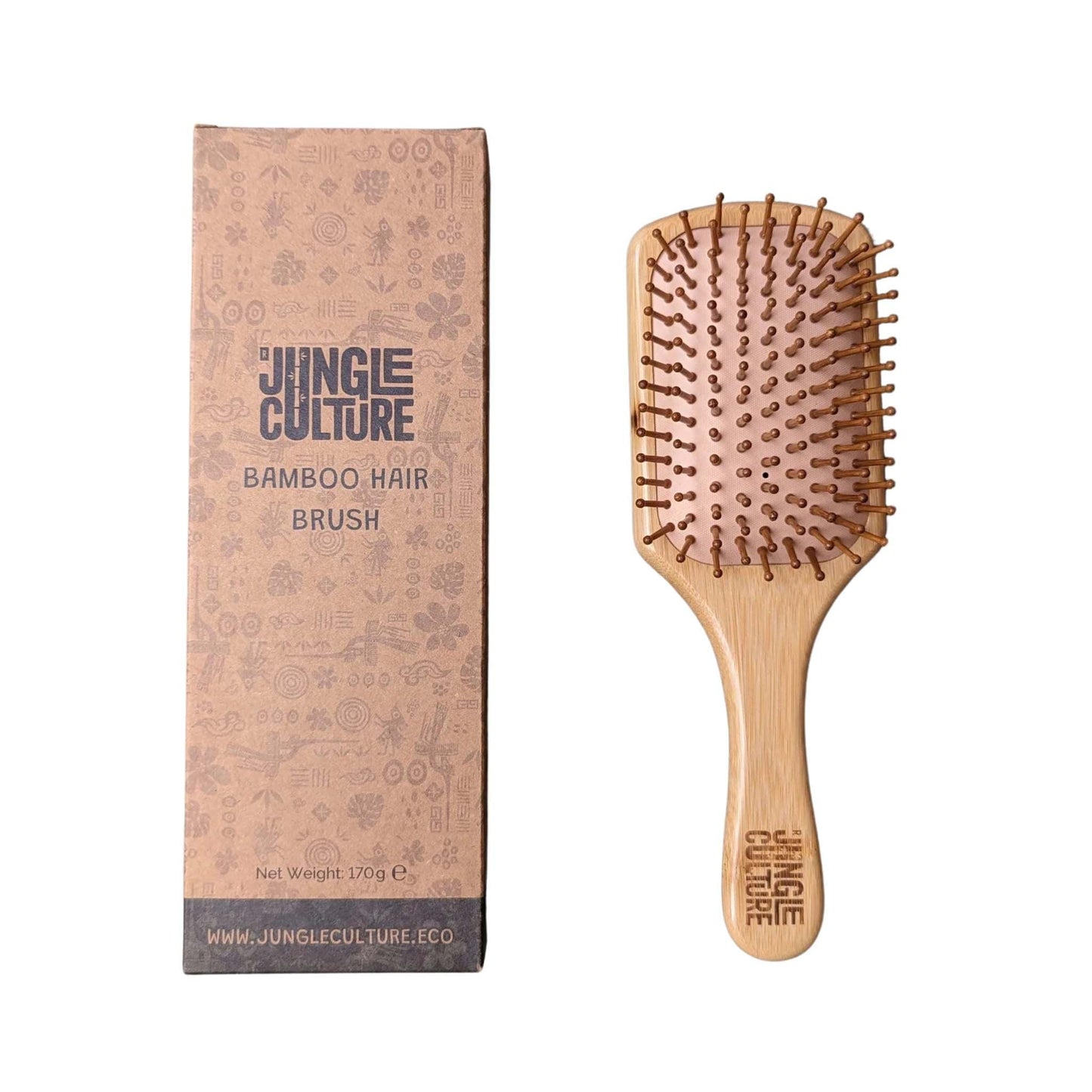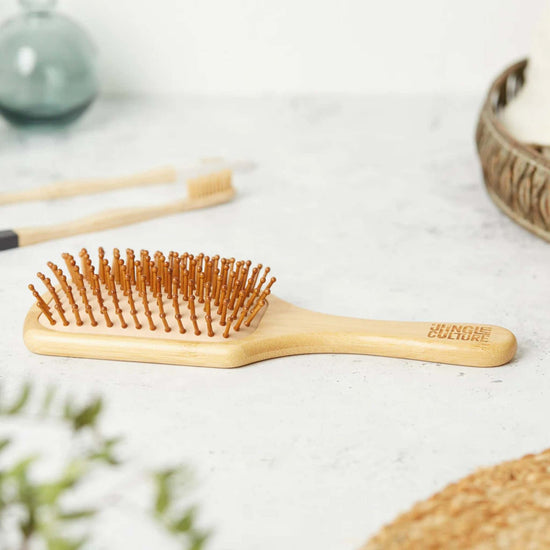 Jungle Culture’s Bamboo Paddle Hairbrush is made from eco-friendly bamboo for gentle, effective care for all hair types. It’s a sustainable alternative to traditional plastic hairbrushes and promotes healthier hair and scalp.