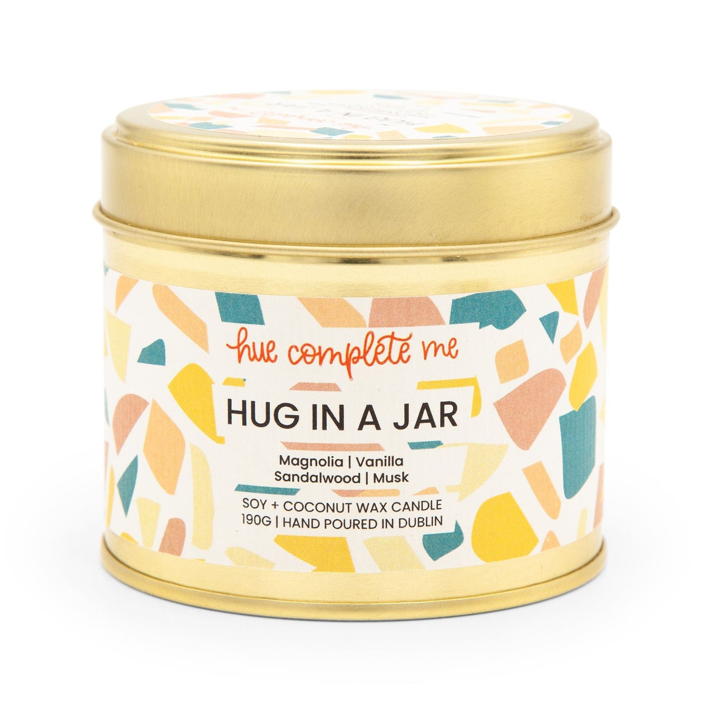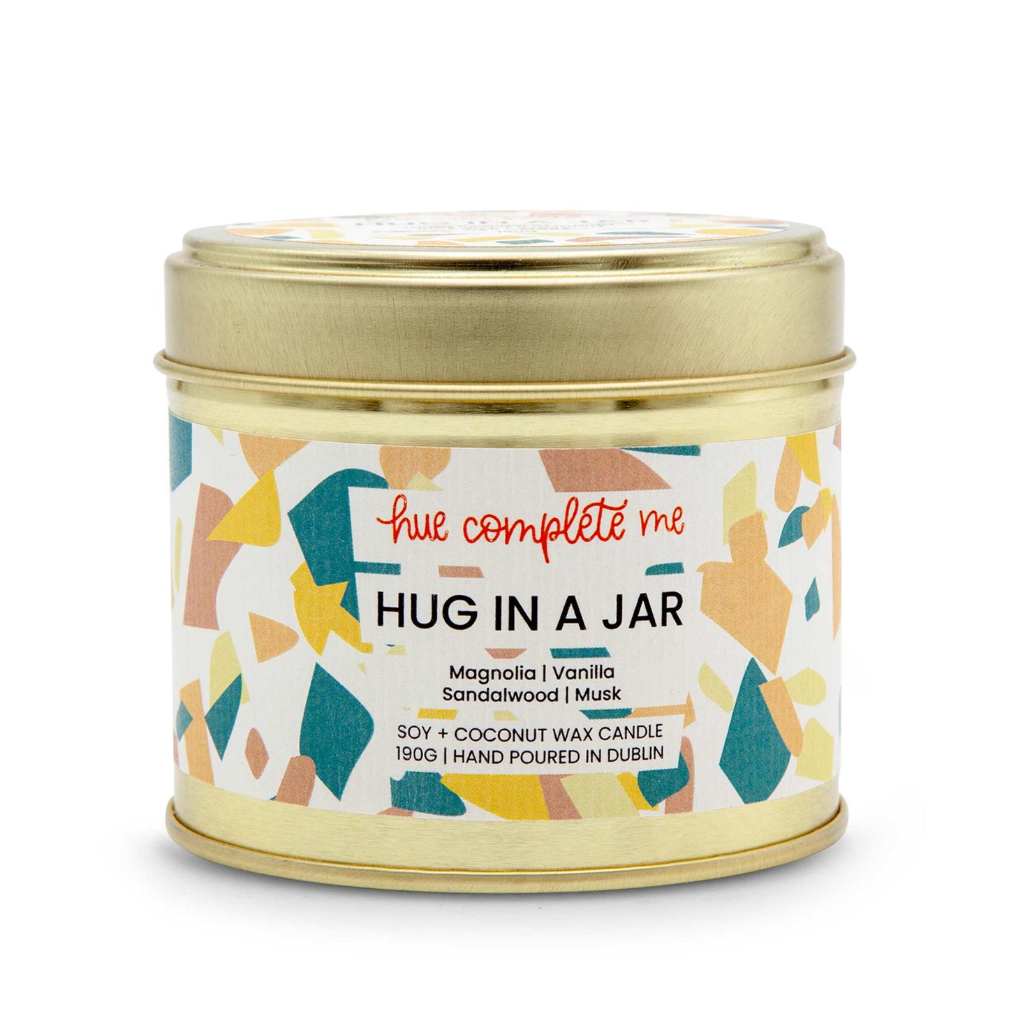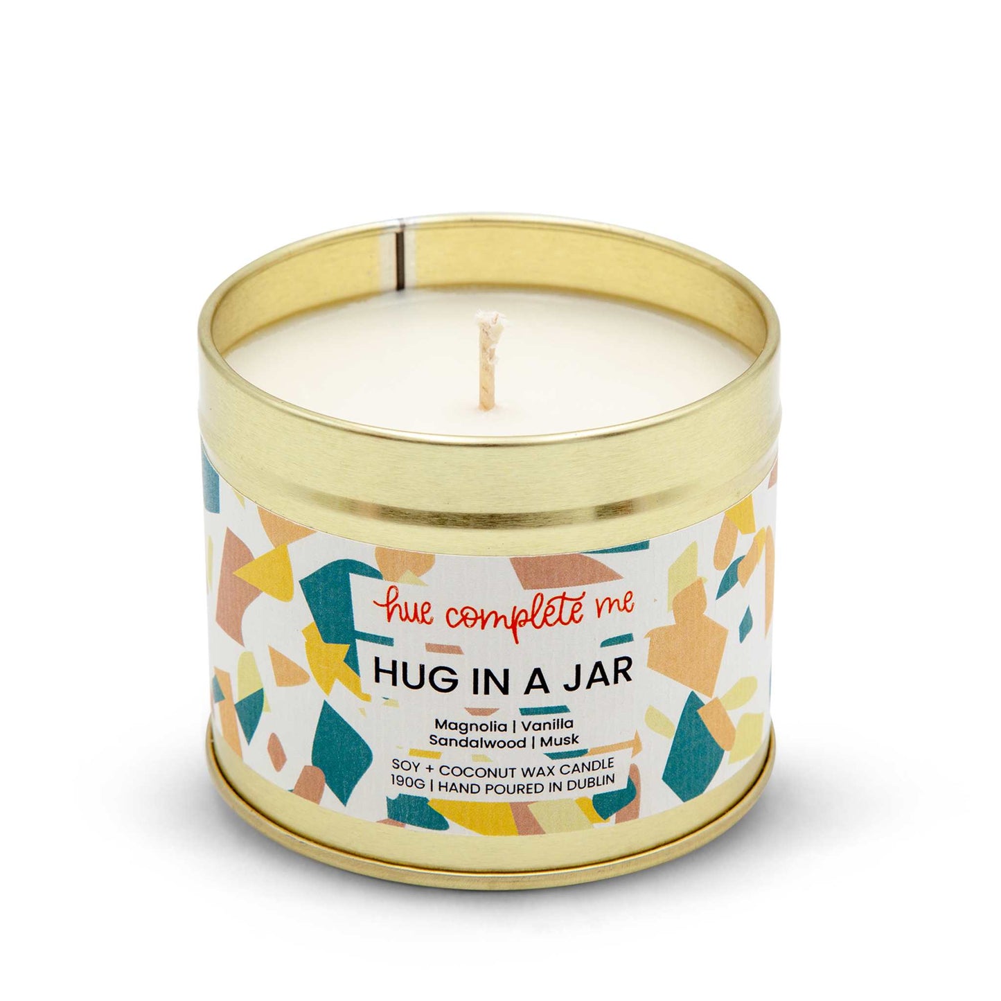 The chic gold tin is more than just pretty, it's practical. Perfect for gift-giving, the tin keeps the candle safe and sound, and it's easy for your loved one to take their "hug" on the go.
