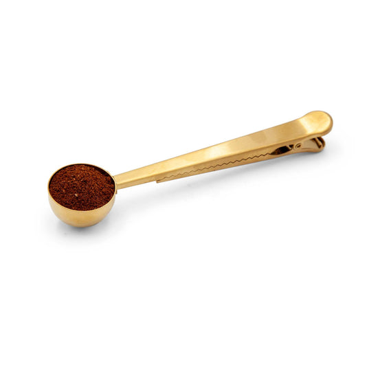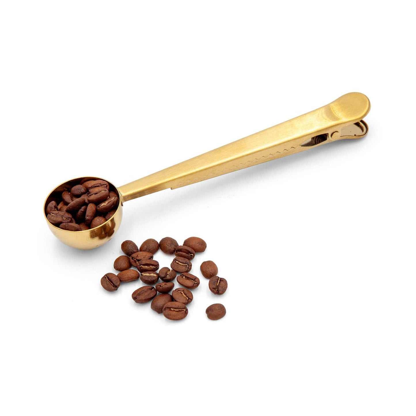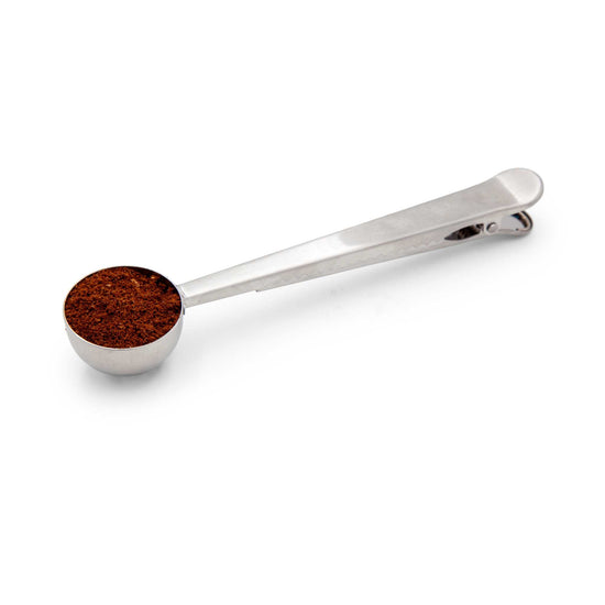 Perfect for ground coffee and loose tea leaves, this clever stainless steel coffee measuring spoon comes with a handy crocodile clip to re-seal your coffee grounds, making sure the contents stays fresh.