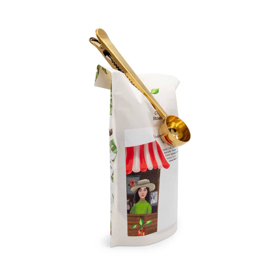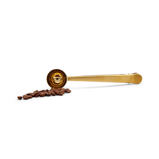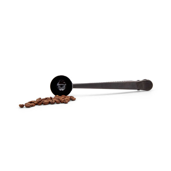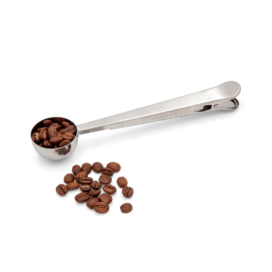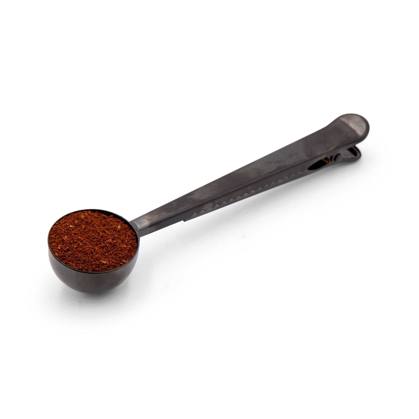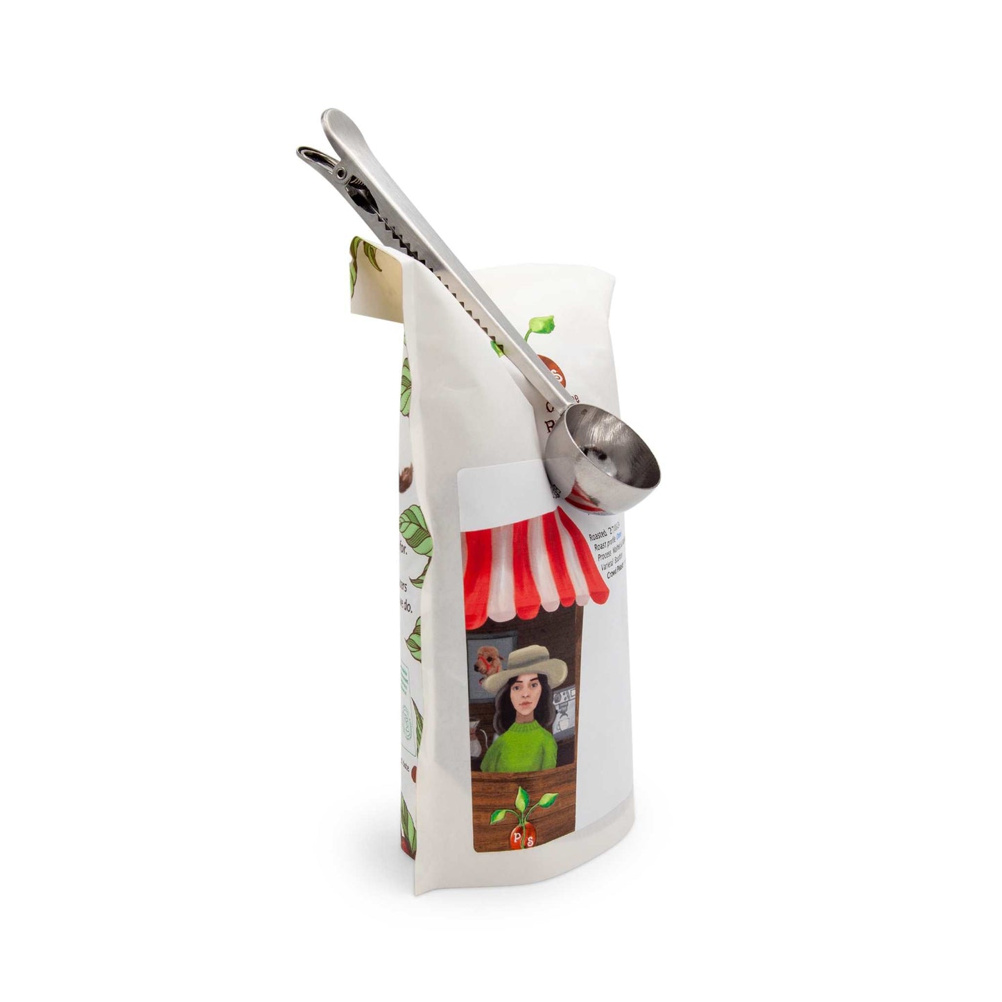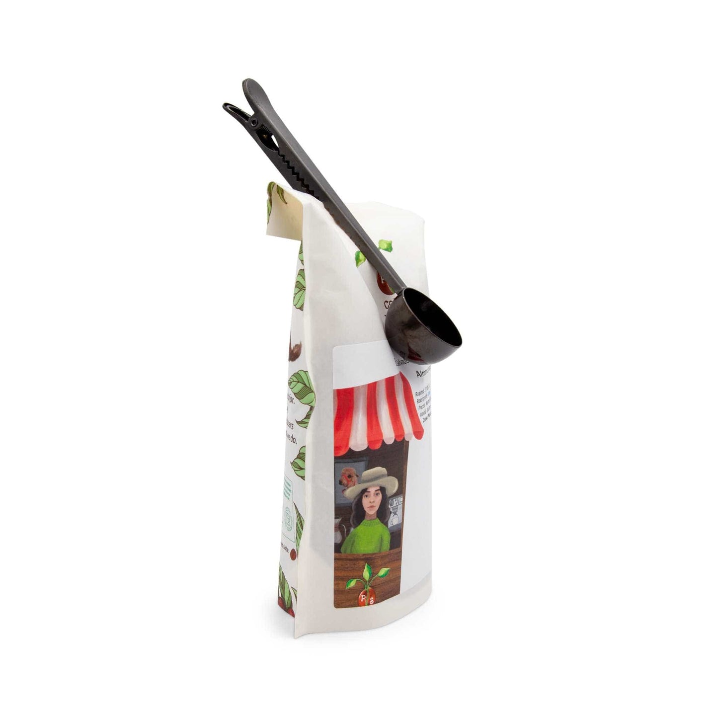 Dual purpose handle of the scoop works as a clip to seal the coffee bag after opening and keep air from oxidizing your fresh coffee.