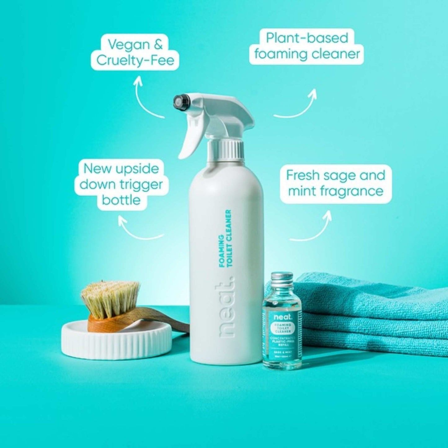 Neat makes cleaning products that look great, smell great and perform brilliantly; all without the need to ship unnecessary water around. The neat Foaming Toilet Cleaner Bundle includes