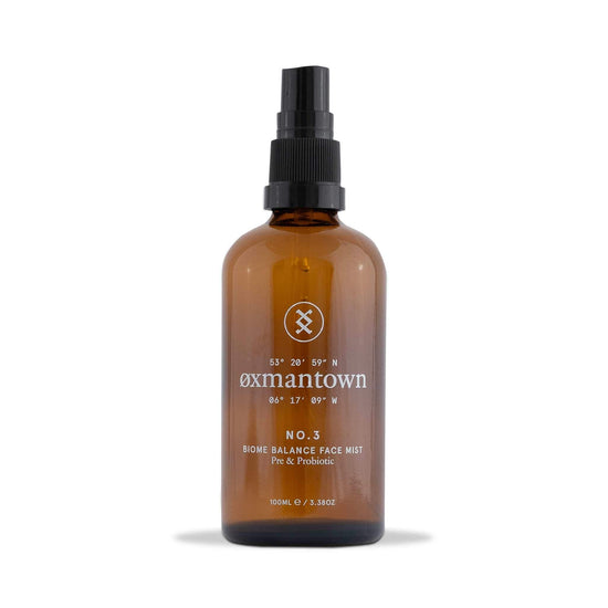 Oxmantown Skincare's Pre & Probiotic Biome Balance Face Mist replenishes and strengthens your skin's microbiome while shielding it from environmental stressors.