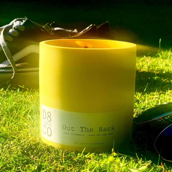 Out The Back is D8's first outdoor candle! It is scented with pure citronella essential oil- containing the highest fragrance content to ensure this candle fills its surrounding area with its zesty and summer fragrance. Keep unwanted bugs at bar during warm summer evenings.