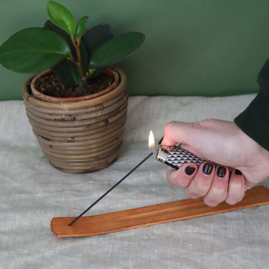 Remember to place it on a surface that's flat and resistant to heat, away from any drafts that could disturb the burn. It's also vital to keep it out of the reach of children, never leave burning incense unattended, and ensure the room is well-ventilated afterwards.