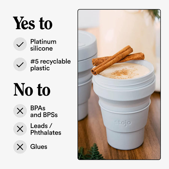 Not too big, not too small, the 12oz/355ml Stojo is juuuust right for just about everything. Take it with you everywhere, and you’ll always be ready for a spontaneous cup of coffee or a hearty helping of porridge.