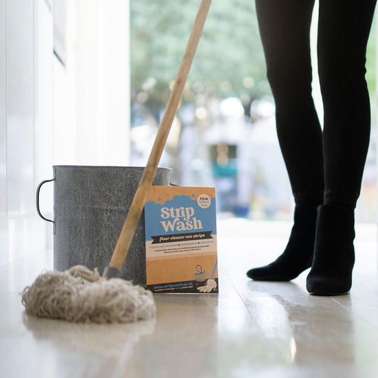 Introducing StripWash - the ultra-concentrated, biodegradable floor cleaning strips that make cleaning a breeze. This innovative floor cleaner is packed in lightweight, plastic-free packaging and contains no bleaching agents, preservatives or phosphates. With StripWash, cleaning has never been so easy and guilt-free!