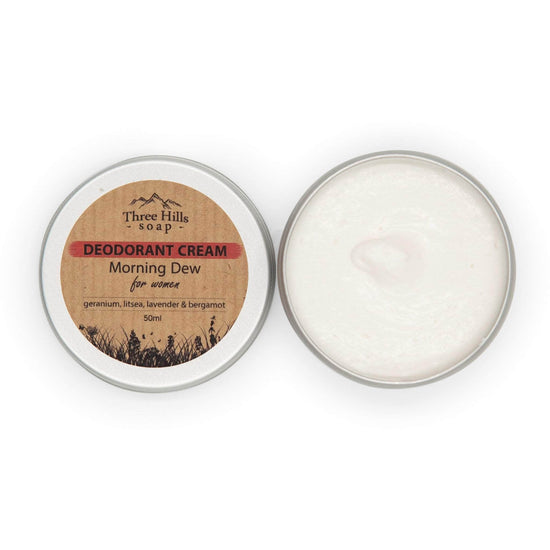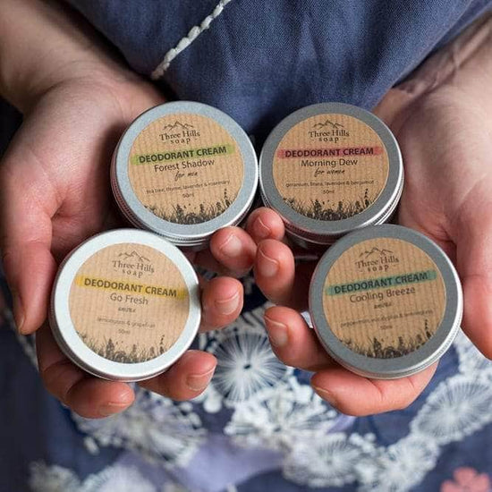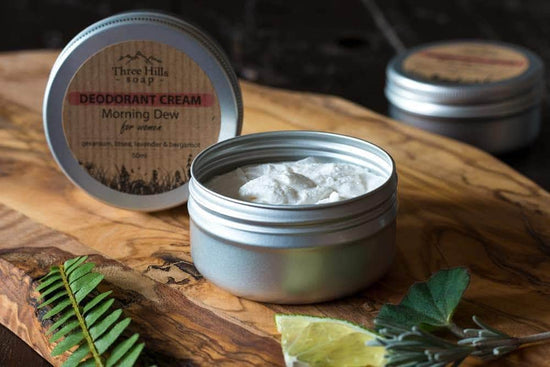 Three Hills Deodorant Creams are handmade in small batches in Ireland using the finest nourishing ingredients. They are palm-oil free and contain no artificial colours or fragrances, no harsh chemicals, parabens, SLS/SLES, alcohol or petrochemicals. Only pure essential oils are used for fragrance (never synthetic fragrance oils). Effective, natural, simple, eco-friendly, vegan-friendly and never tested on animals. Comes in a reusable and recyclable aluminium tin.