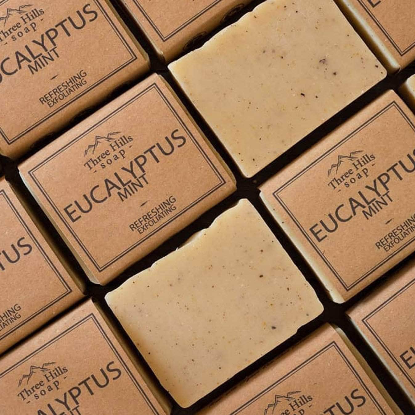 - Eucalyptus and Spearmint are the effective duos we can’t seem to get enough of and others agree. That’s why this soap bar is a hit among our customers. You’ll be feeling minty fresh in no time with this invigorating natural soap bar. So, breath deeply, stress will fade away!