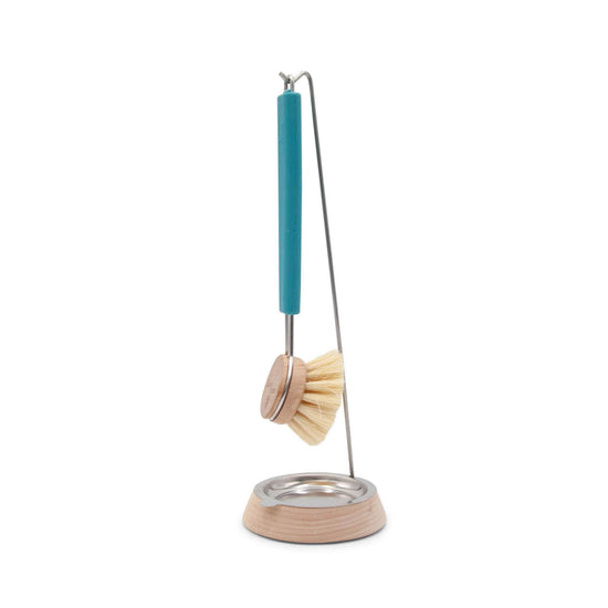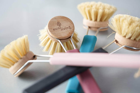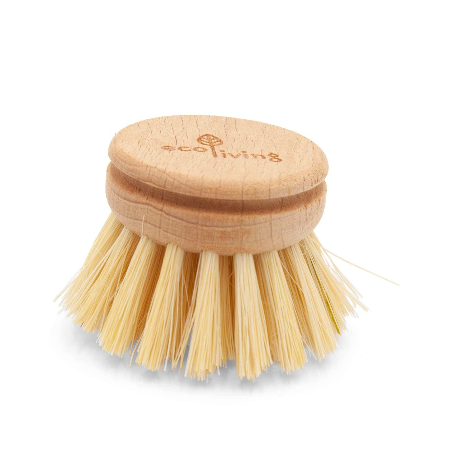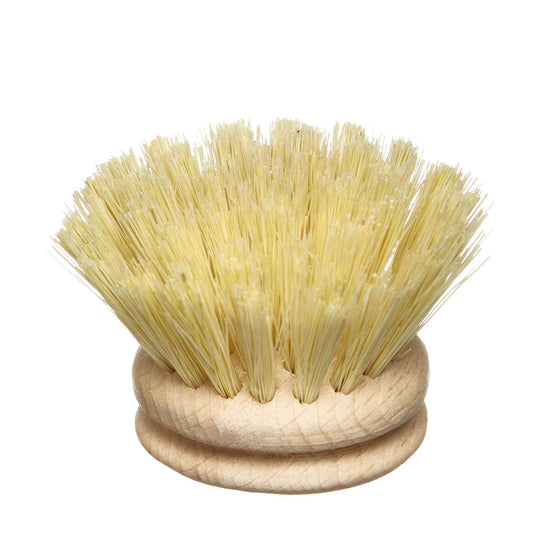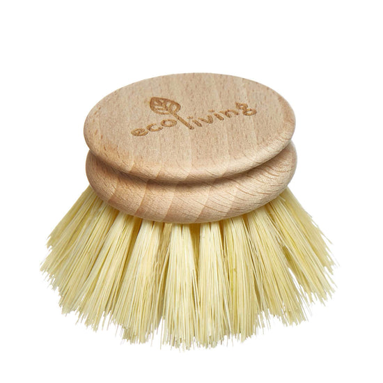 A dish brush with natural plant-bristles. Plastic-free, and vegan with a replaceable FSC® beech wood head. The brush head is removable and replaceable. The standard refill heads from the EcoLiving range fit this brush. The handle is endlessly reusable with a mix of silicone, stainless steel.